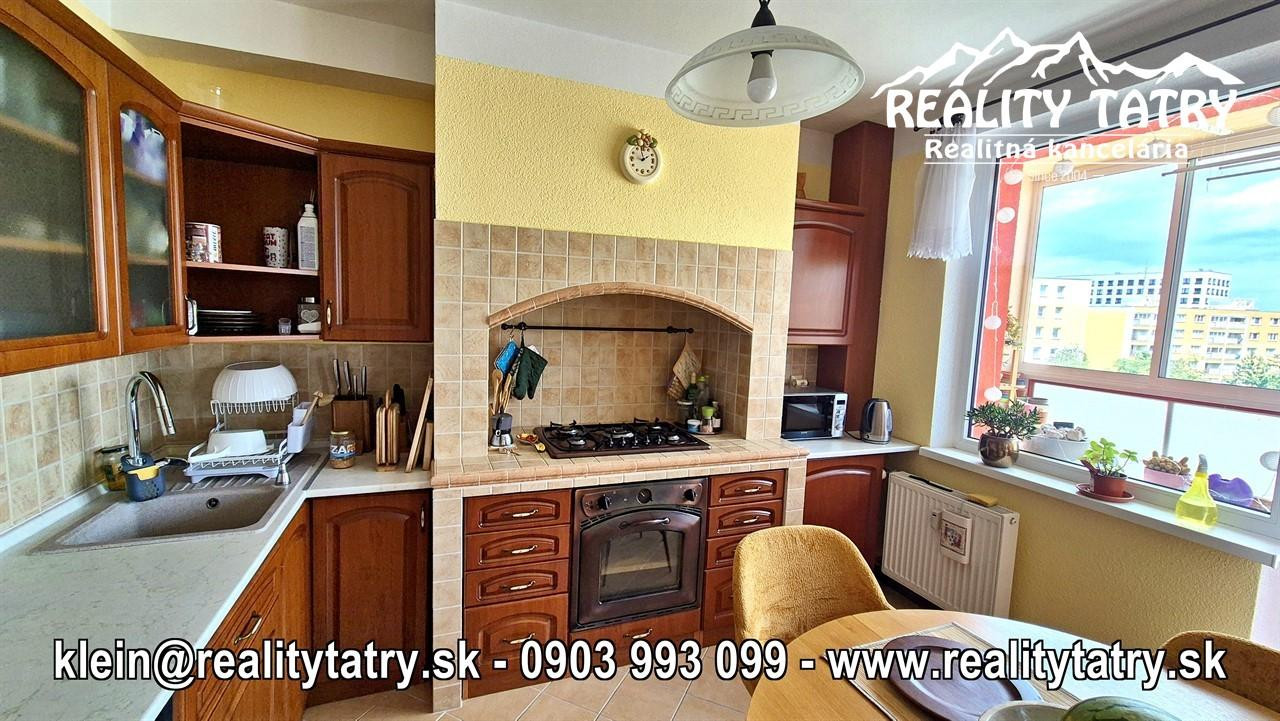 REZERVOVANÉ !!! EXKLUZÍVNE !!! Ponúkame na predaj priestranný 3 izbový byt s loggiou vo VÝBORNOM STAVE !!! Byt sa nachádza na sídl. Západ v Poprade na ulici Partizánska. Je to veľmi pekný teplý slnečný byt o výmere 78 m2 s loggiou. Byt prešiel kompletnou rekonštrukciou s rozsiahlou zmenou dispozičného riešenia. Byt pozostáva z priestrannej kuchyne, troch veľkých izieb, murovanej kúpeľne a WC. V kuchyni sa nachádza kuchynská linka na mieru s elektrospotrebičmi - umývačka riadu, plynová varná doska, elektrická vstavaná rúra, digestor, chladnička, práčka, plastové okná, veľká priestranná kúpeľňa s rohovou vaňou a sprchovacím kútom, bezpečnostné dvere. Z kuchyne je východ na zasklenú loggiu. Byt sa predáva kompletne zariadený tak ako na fotodokumentácii. Nachádza sa v zateplenom bytovom dome, ktorý prešiel rozsiahlou rekonštrukciou. Vymenené stupačkové rozvody, renovácia výťahu, zateplený bytový dom. Vynikajúca poloha blízko centra 5 min peši. Kúrenie v byte je ústredne, k bytu prislúcha pivnica na prízemí domu. Byt je orientovaný na Východ - Juh. Kompletná občianska vybavenosť v samotnej blízkosti, MŠ, ZŠ, obchody, knižnica, lekár, a iné.