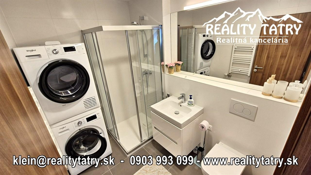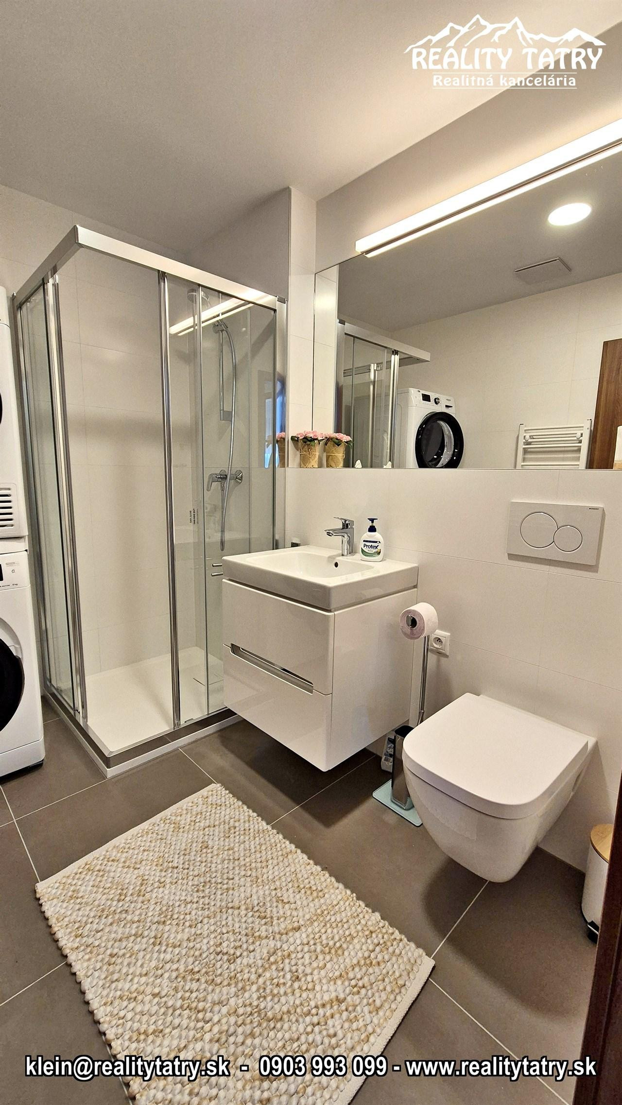 REALITY TATRY - EXKLUZÍVNE !!! Ponúkame na prenájom nadštandardný exkluzívny 3 izbový byt s terasou v Poprade. Byt sa nachádza v novostavbe bytového domu Karpatská residence na v samotnej blízkosti centra. Výmera bytu 80 m2 + slnečná terasa 5 m2 z ktorej je výhľad na mesto. Komfortné bývanie v najvyššej kvalite a vybavenosti aj pre náročného klienta. Výborná dispozícia bytu, otvorený priestor Byt pozostáva z priestrannej obývacej miestnosti prepojenej s kuchynským kútom, priestrannej spálne so vstupom do kúpeľne so sprchovacím kútom a WC, detskej izby, kúpeľne s vaňou a WC, chodby a terasy. Kuchynská linka na mieru so zabudovanými elektrospotrebičmi - keramická varná doska, elektrická teplovzdušná rúra, mikrovlna rúra, umývačka riadu, chladnička s mrazničkou, digestor. Byt je kompletne vybavený - sedacia súprava, sektorový nábytok, TV komoda, TV, šatníkové skrine na chodbe, šatníková skriňa v spálni, manželská posteľ s nočnými stolíkmi, ... a t.ď. Byt je orientovaný na Východ. K bytu prislúcha aj sklad na poschodí pri byte, a pivničná kobka v suteréne bytového domu a taktiež vnútorné garážové parkovacie miesto. V prípade záujmu je k bytu možnosť prenájmu aj druhého podzemného garážového státia za doplatok.
