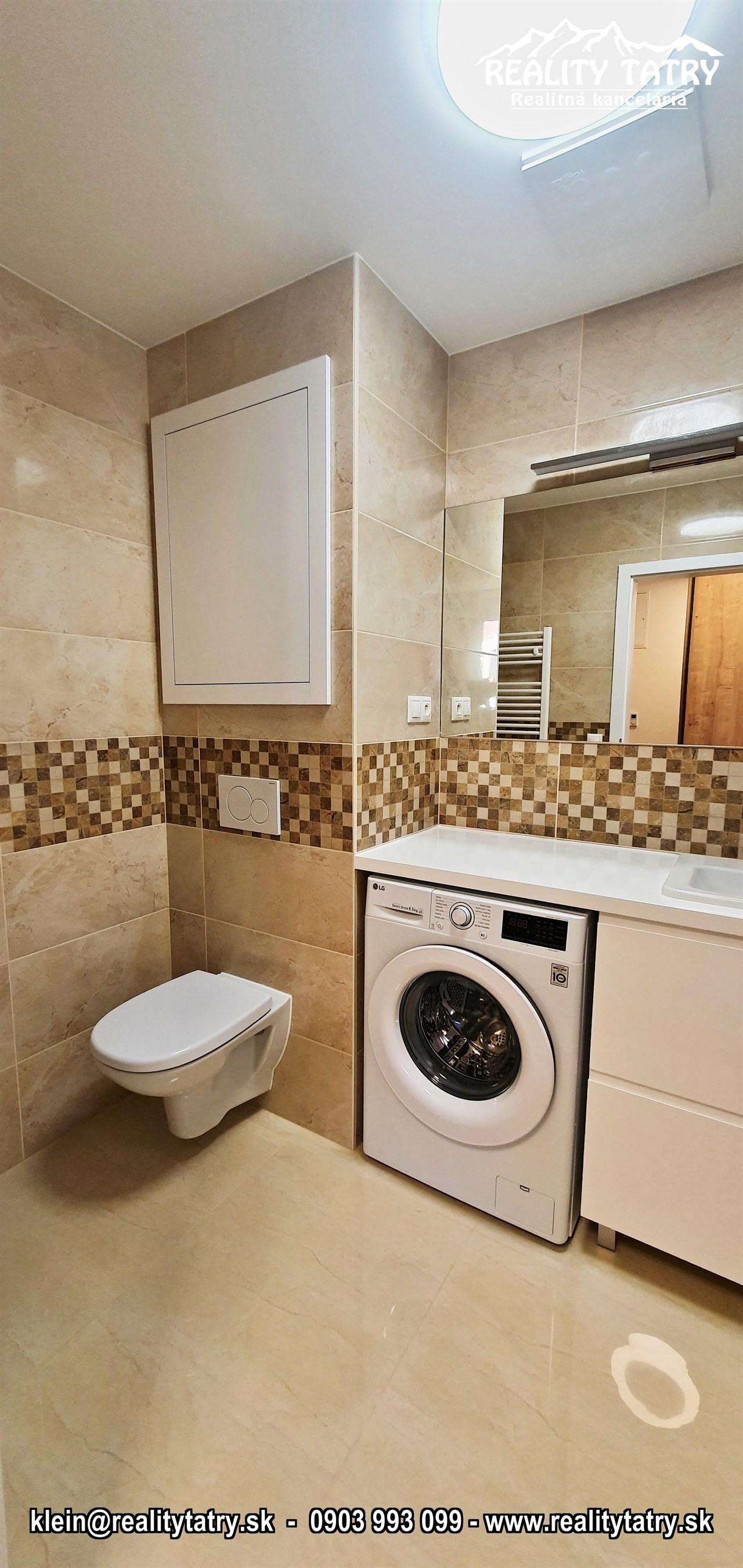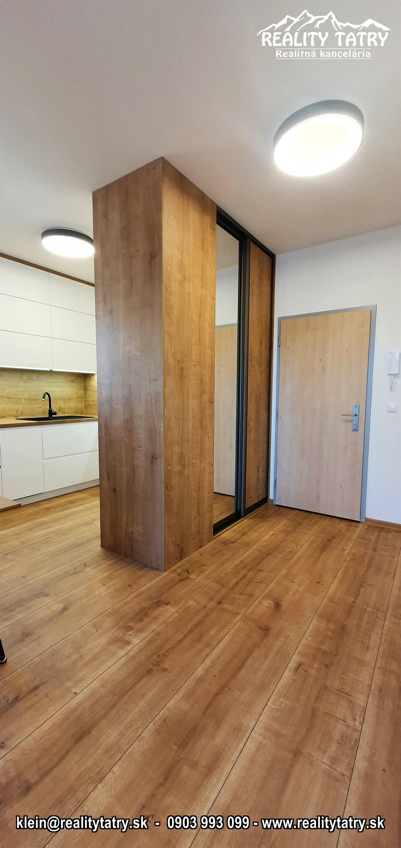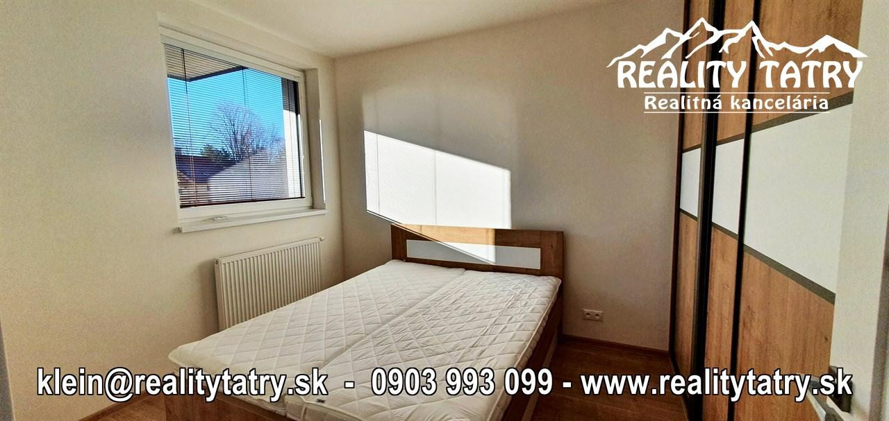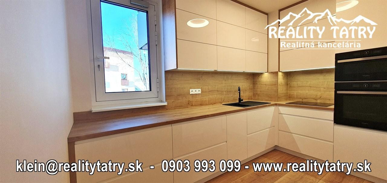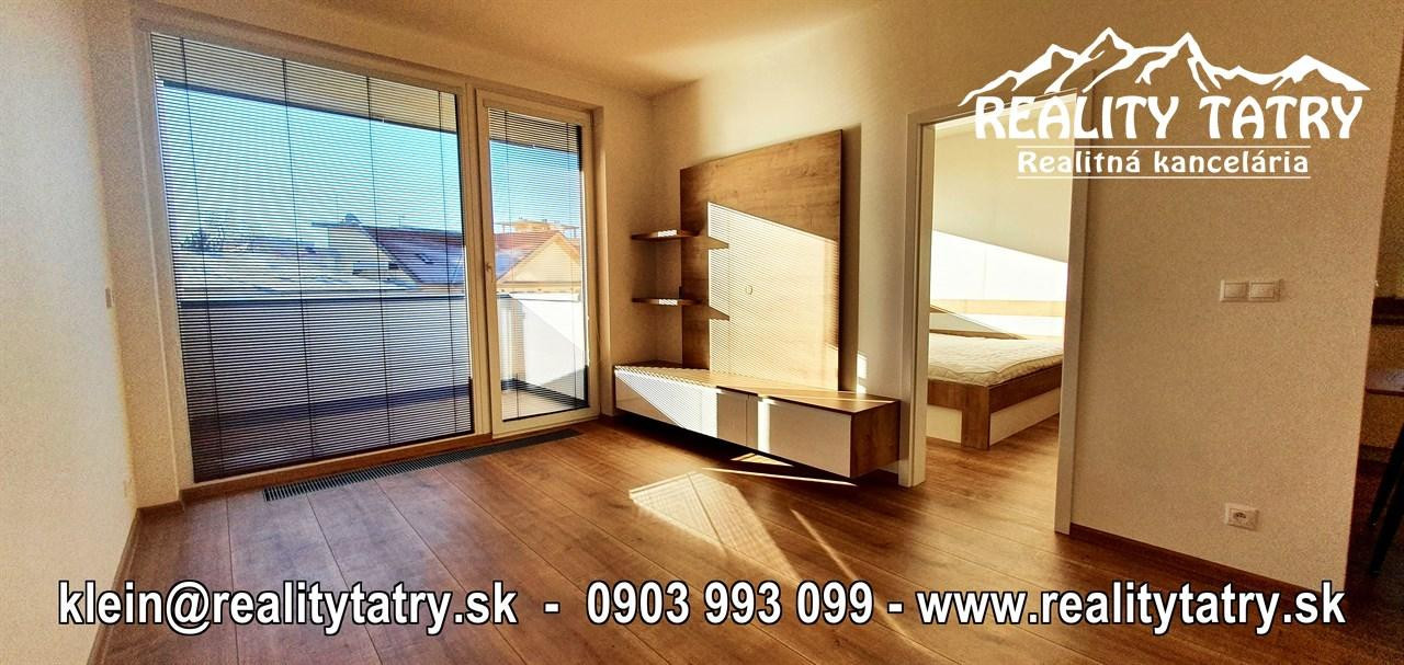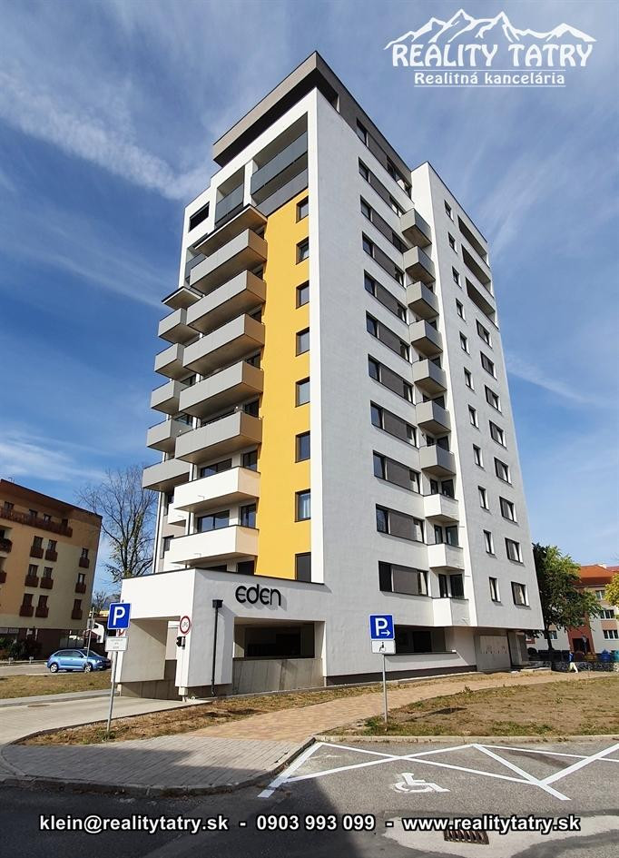 REALITY TATRY - EXKLUZÍVNE !!! Ponúkame na prenájom nádherný 2 izbový byt s terasou v Poprade. Byt sa nachádza v novostavbe bytového domu EDEN na ul. Štefánikova v samotnej blízkosti centra. Výmera bytu 48 m2 + slnečná terasa 5 m2 - orientovaná na juh. Komfortné bývanie vo vysokej kvalite a vybavenosti aj pre náročnejšieho klienta. Veľmi dobrá dispozícia bytu. Byt pozostáva z obývacej miestnosti prepojenej s kuchynským kútom, spálne, kúpeľne s vaňou a WC, chodby a terasy. Kuchynská linka na mieru so zabudovanými elektrospotrebičmi - keramická varná doska, elektrická teplovzdušná rúra, mikrovlna rúra, umývačka riadu, chladnička, digestor. Byt je čiastočne vybavený - sektorový nábytok, TV komoda, šatníkové skrine na chodbe, šatníková skriňa v spálni, manželská posteľ, práčka ... a t.ď. Byt je orientovaný na JUH a ZÁPAD. K bytu prislúcha aj sklad na poschodí pri byte a jedno vyhradené vonkajšie parkovacie státie.