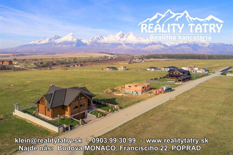 AKCIOVÁ CENA !!! REALITY TATRY - realitná kancelária vám ponúka na predaj stavebné pozemky s kompletnými inžinierskymi sieťami - voda, plyn, elektrina, kanalizácia, kompletná asfaltová prístupová cesta s osvetlením. Pozemky sa nachádzajú v novej rekreačnej štvrti vo Veľkej Lomnici a sú situované na juhozápadnej časti kopca priamo nad golfovým ihriskom Black Stork. Unikátna orientácia ponúka jedinečné výhľady na panorámu Vysokých a Nízkych Tatier ako aj Slovenského raja. Lokalita je ohraničená zdola potokom a golfovým ihriskom a zvrchu lemovaná lesom.