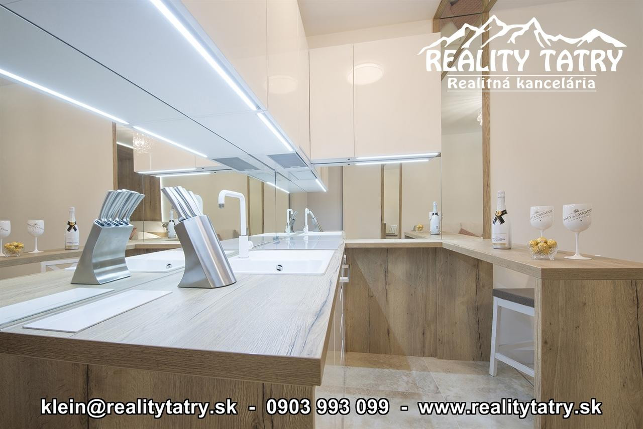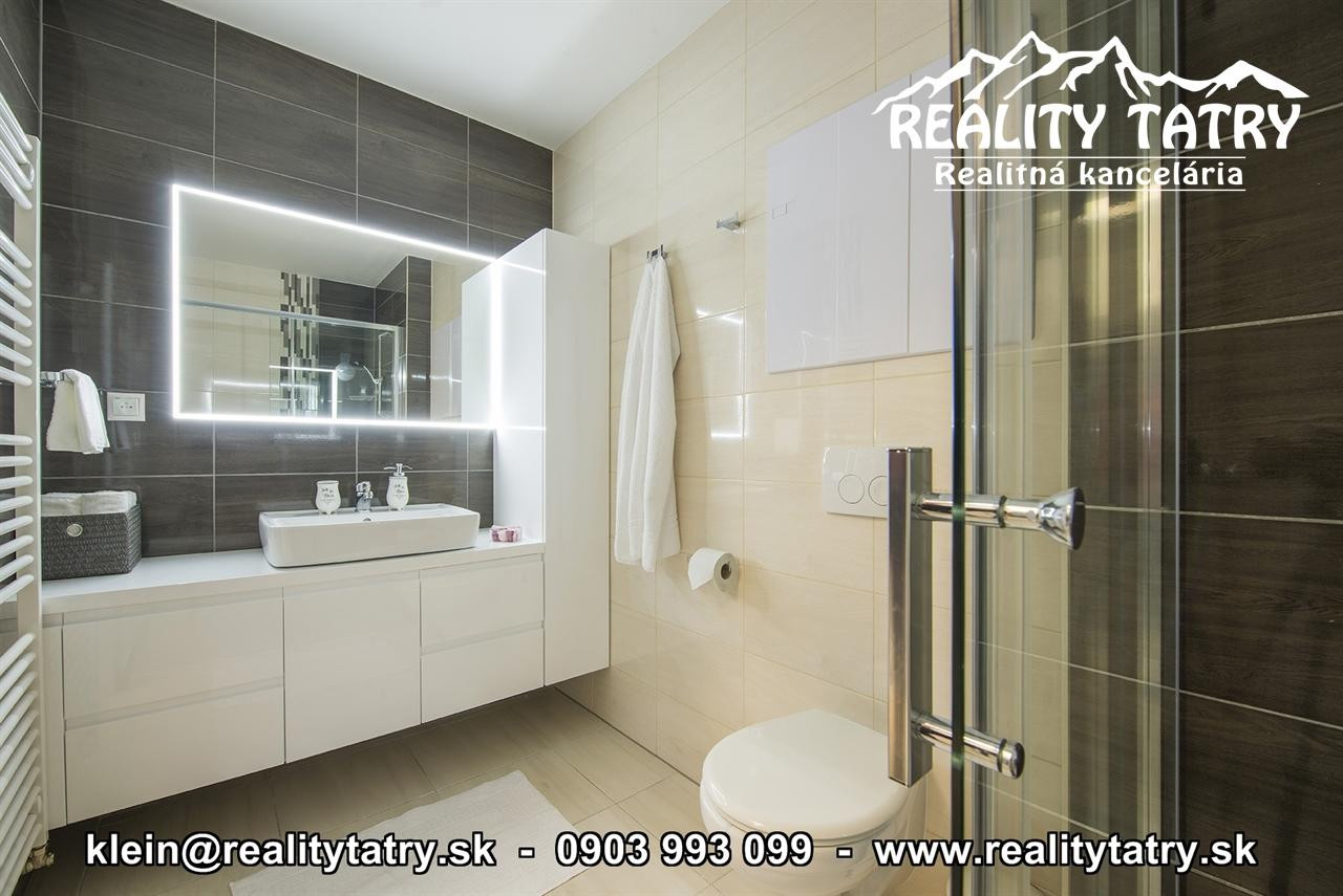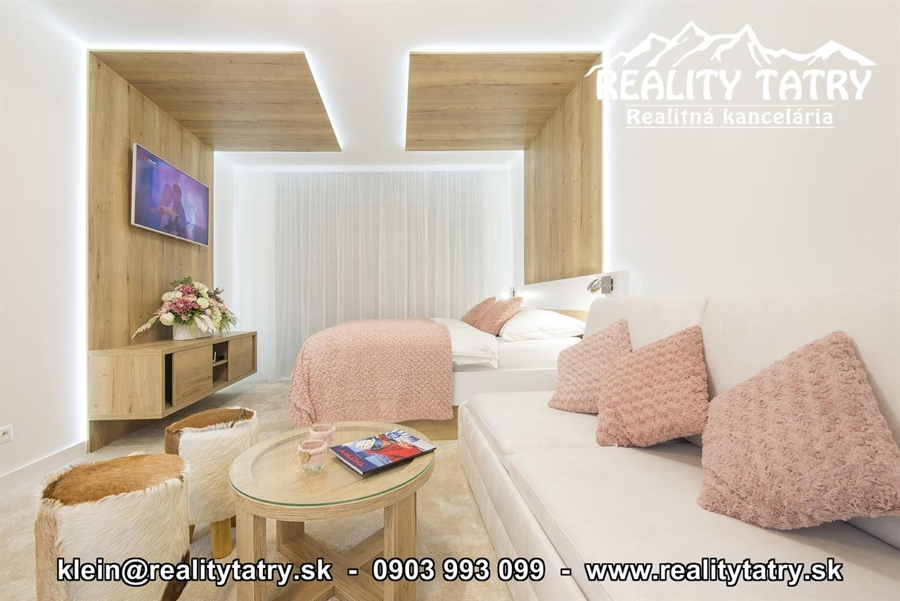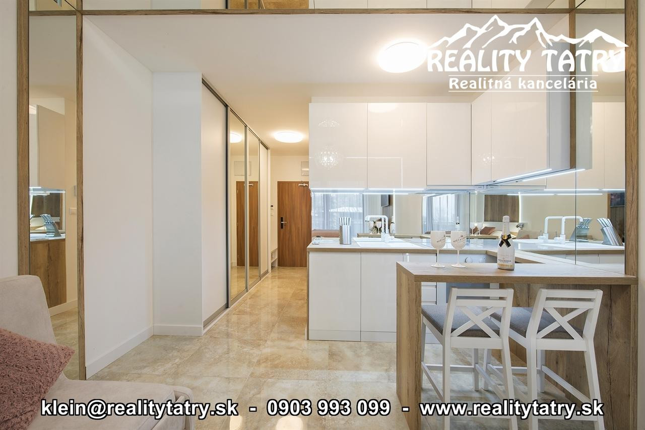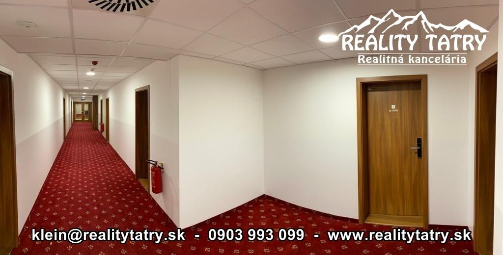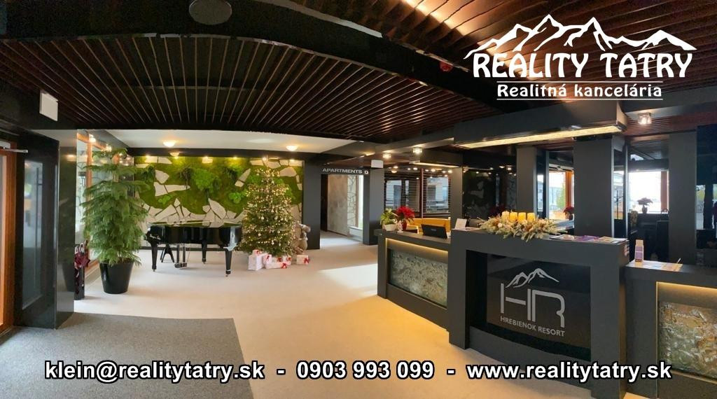 PRENAJATÉ !!! - REALITY TATRY - EXKLUZÍVNE !!! Ponúkame na prenájom exkluzívny apartmán priamo v srdci Vysokých tatier - Starý Smokovec. Veľkosť apartmánu je 38 m2 + 4 m2 balkón. Apartmán sa nachádza v unikátnom komplexe HREBIENOK Resort. Komfortné bývanie v najvyššej kvalite a vybavenosti. Apartmán pozostáva z obývacej haly spolu s kuchynským kútom, Kúpeľne s WC a balkónu. Kuchynská linka so zabudovanými elektrospotrebičmi: keramická varná doska, chladnička, elektrická teplovzdušná rúra. V kúpeľni sprchovací kút, toaleta a kúpeľňový nábytok na mieru. Apartmán je kompletne vybavený - vstavaná šatníková skriňa na chodbe, sedacej rozkladacej pohovky, dvoj-lôžkovou posteľou, TV, konferenčným stolíkom, 2 x taburetka. Apartmán sa prenajíma kompletne vybavený nábytkom, TV, WiFi, kuchynské potreby na varenie a stolovanie. Priamo v rezorte je možnosť využitia wellness, bazénu a posilňovne. Parkovanie je možné za zvýhodnený poplatok pred rezortom. Všetky letné a zimné aktivity v samotnej blízkosti rezortu cez lyžovanie, turistika, relax, bicyklovanie, golf a iné.