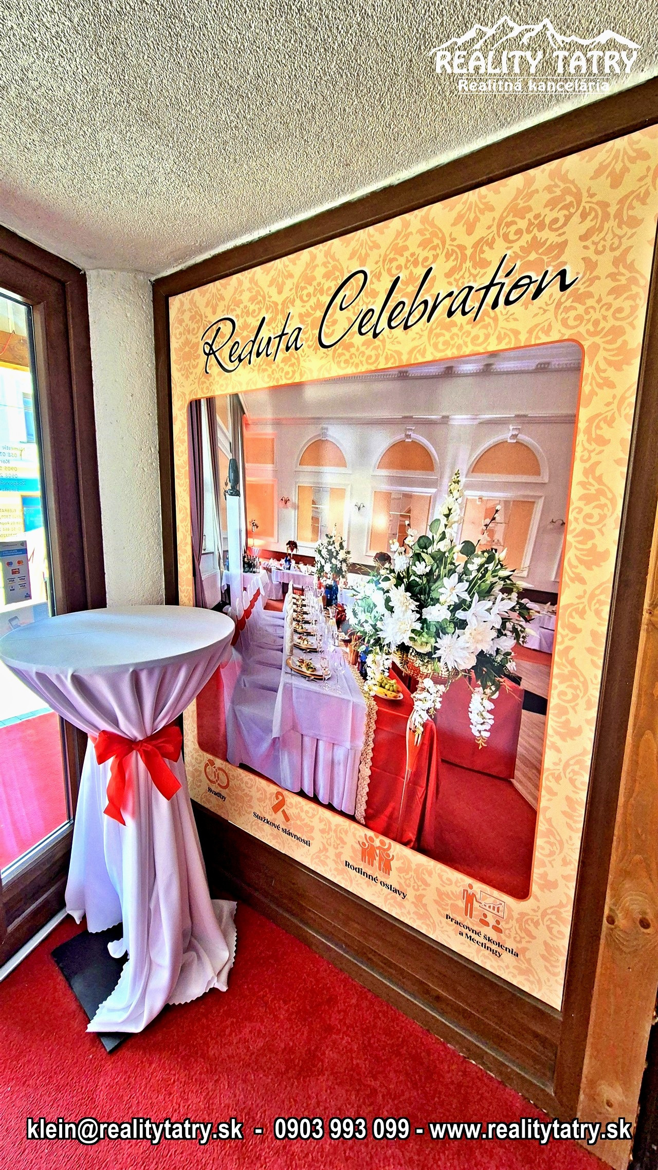 Vďaka svojej polohe v pešej zóne, vysokej frekvencii návštevníkov a historickému charakteru má Reduta obrovský potenciál nielen na pokračovanie v reštauračnej činnosti, ale aj na rozšírenie služieb – napríklad o vináreň, klubový priestor, kultúrne podujatia, tematické večery či súkromné eventy. V čarovne exkluzívnych priestoroch na námestí Popradu dokážete usporiadať výnimočnú svadbu, originálnu stužkovú, nadčasový večierok či elegantný ples s kapacitou až 150 hostí. Okrem toho je sálu možné pripraviť do rôznych farebných variácií, ktoré obohatia promócie, krstiny, kary, semináre či rôzne iné oslavy.