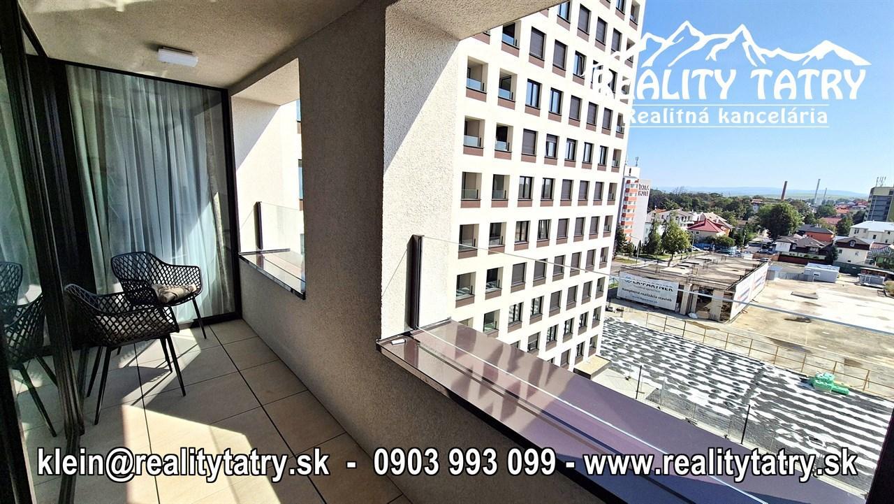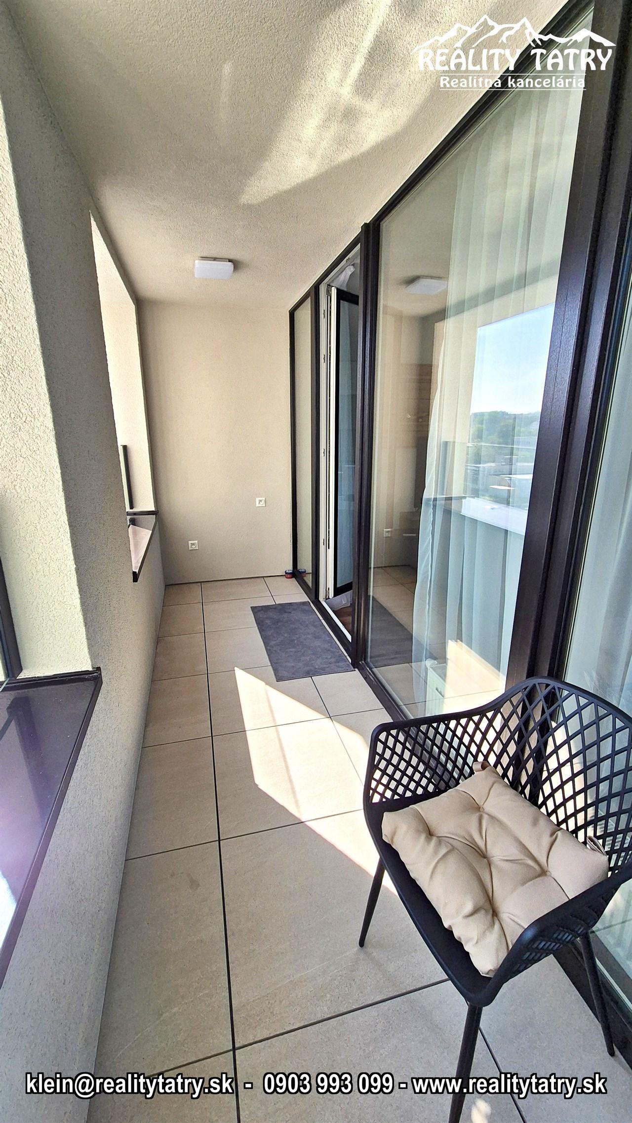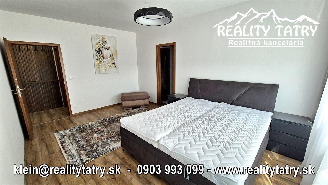 REALITY TATRY - EXKLUZÍVNE !!! Ponúkame na prenájom nadštandardný exkluzívny 3 izbový byt s terasou v Poprade. Byt sa nachádza v novostavbe bytového domu Karpatská residence na v samotnej blízkosti centra. Výmera bytu 80 m2 + slnečná terasa 5 m2 z ktorej je výhľad na mesto. Komfortné bývanie v najvyššej kvalite a vybavenosti aj pre náročného klienta. Výborná dispozícia bytu, otvorený priestor Byt pozostáva z priestrannej obývacej miestnosti prepojenej s kuchynským kútom, priestrannej spálne so vstupom do kúpeľne so sprchovacím kútom a WC, detskej izby, kúpeľne s vaňou a WC, chodby a terasy. Kuchynská linka na mieru so zabudovanými elektrospotrebičmi - keramická varná doska, elektrická teplovzdušná rúra, mikrovlna rúra, umývačka riadu, chladnička s mrazničkou, digestor. Byt je kompletne vybavený - sedacia súprava, sektorový nábytok, TV komoda, TV, šatníkové skrine na chodbe, šatníková skriňa v spálni, manželská posteľ s nočnými stolíkmi, ... a t.ď. Byt je orientovaný na Východ. K bytu prislúcha aj sklad na poschodí pri byte, a pivničná kobka v suteréne bytového domu a taktiež vnútorné garážové parkovacie miesto. V prípade záujmu je k bytu možnosť prenájmu aj druhého podzemného garážového státia za doplatok.