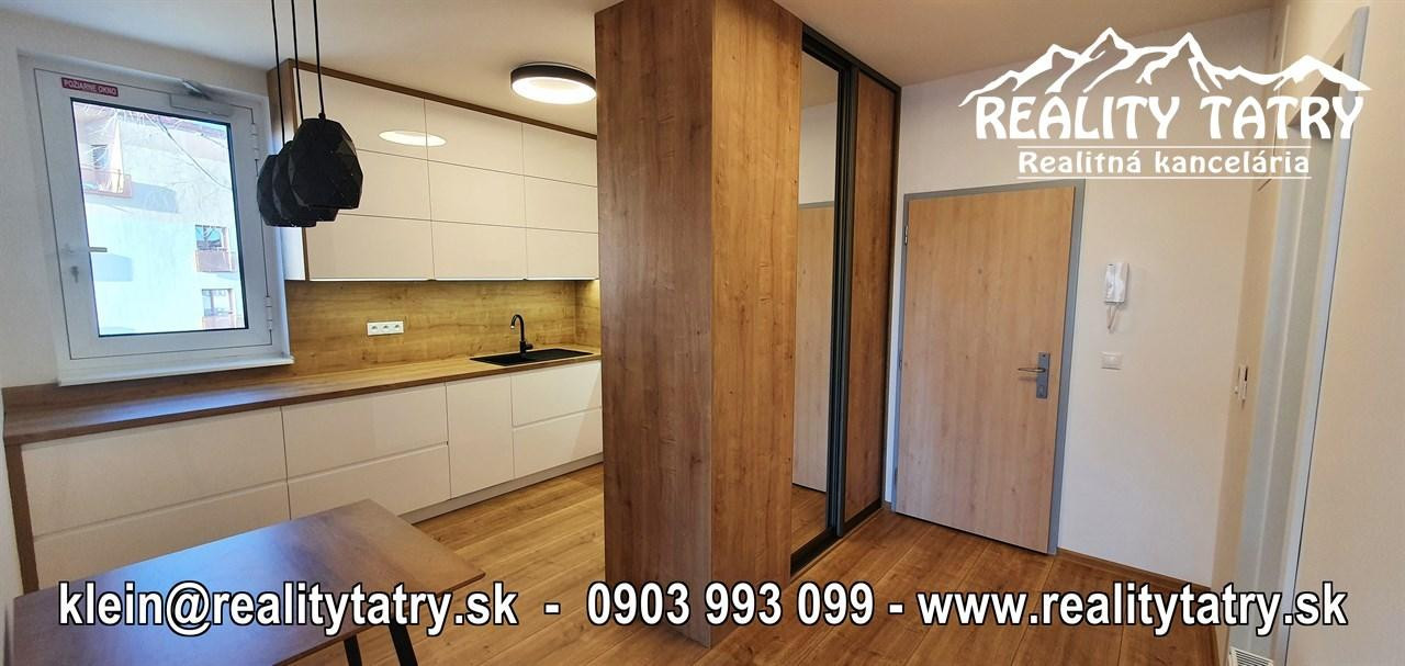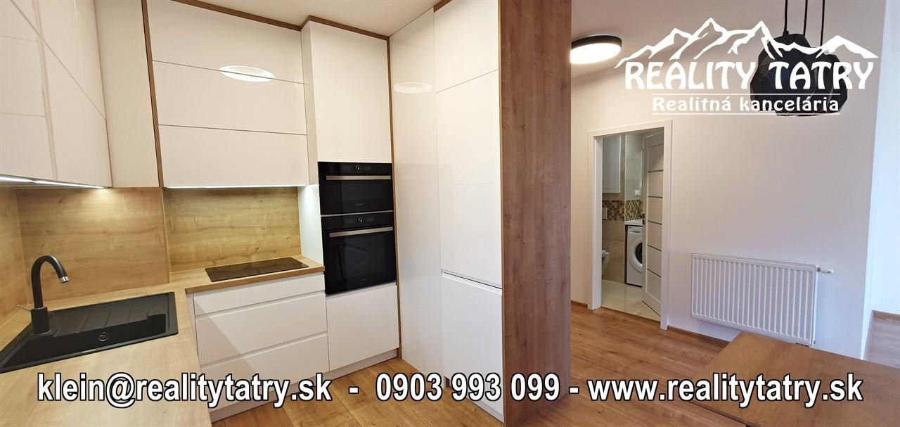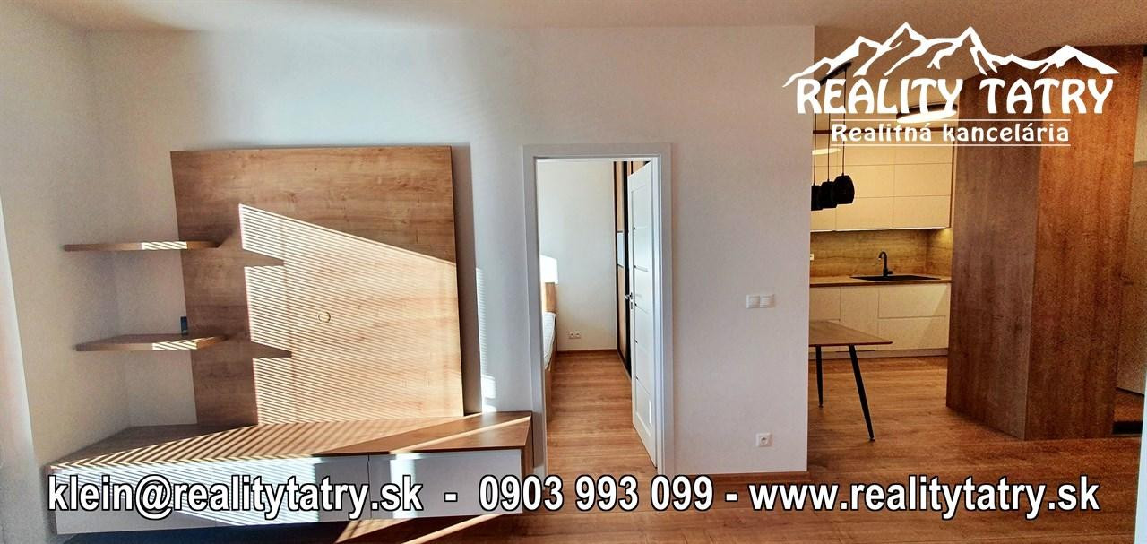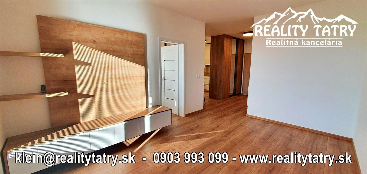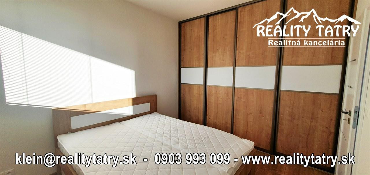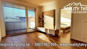 REALITY TATRY - EXKLUZÍVNE !!! Ponúkame na prenájom nádherný 2 izbový byt s terasou v Poprade. Byt sa nachádza v novostavbe bytového domu EDEN na ul. Štefánikova v samotnej blízkosti centra. Výmera bytu 48 m2 + slnečná terasa 5 m2 - orientovaná na juh. Komfortné bývanie vo vysokej kvalite a vybavenosti aj pre náročnejšieho klienta. Veľmi dobrá dispozícia bytu. Byt pozostáva z obývacej miestnosti prepojenej s kuchynským kútom, spálne, kúpeľne s vaňou a WC, chodby a terasy. Kuchynská linka na mieru so zabudovanými elektrospotrebičmi - keramická varná doska, elektrická teplovzdušná rúra, mikrovlna rúra, umývačka riadu, chladnička, digestor. Byt je čiastočne vybavený - sektorový nábytok, TV komoda, šatníkové skrine na chodbe, šatníková skriňa v spálni, manželská posteľ, práčka ... a t.ď. Byt je orientovaný na JUH a ZÁPAD. K bytu prislúcha aj sklad na poschodí pri byte a jedno vyhradené vonkajšie parkovacie státie.