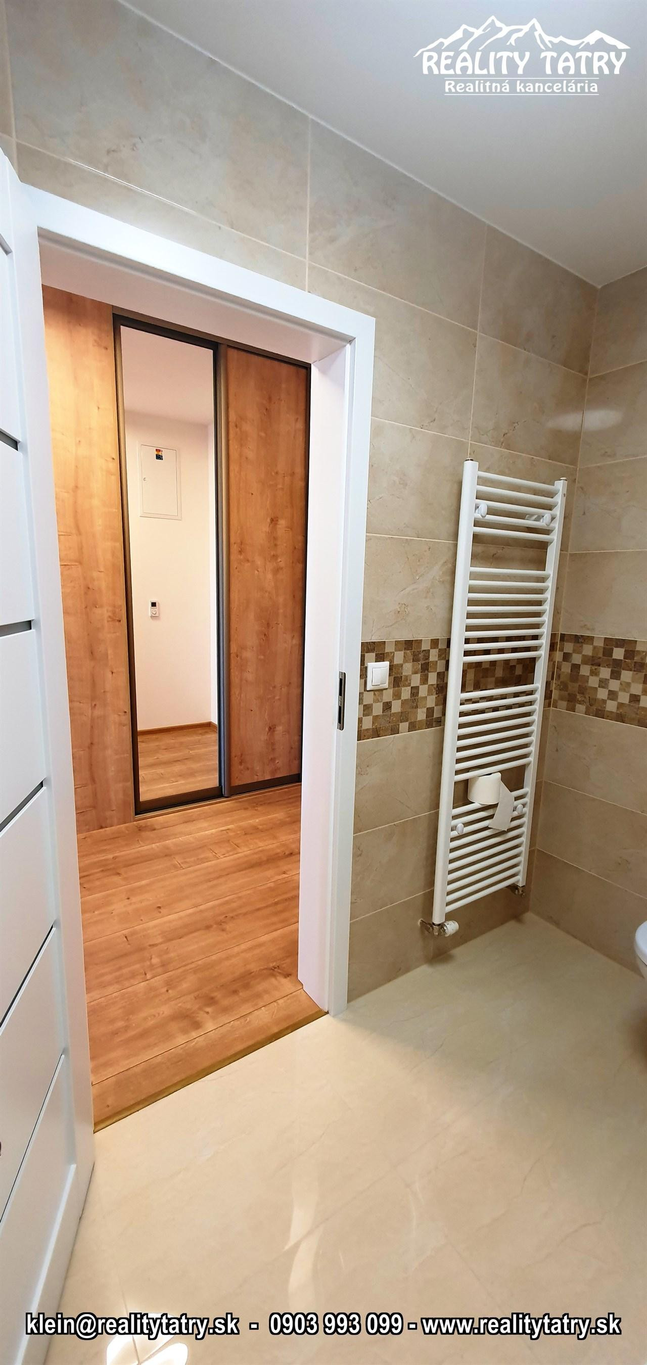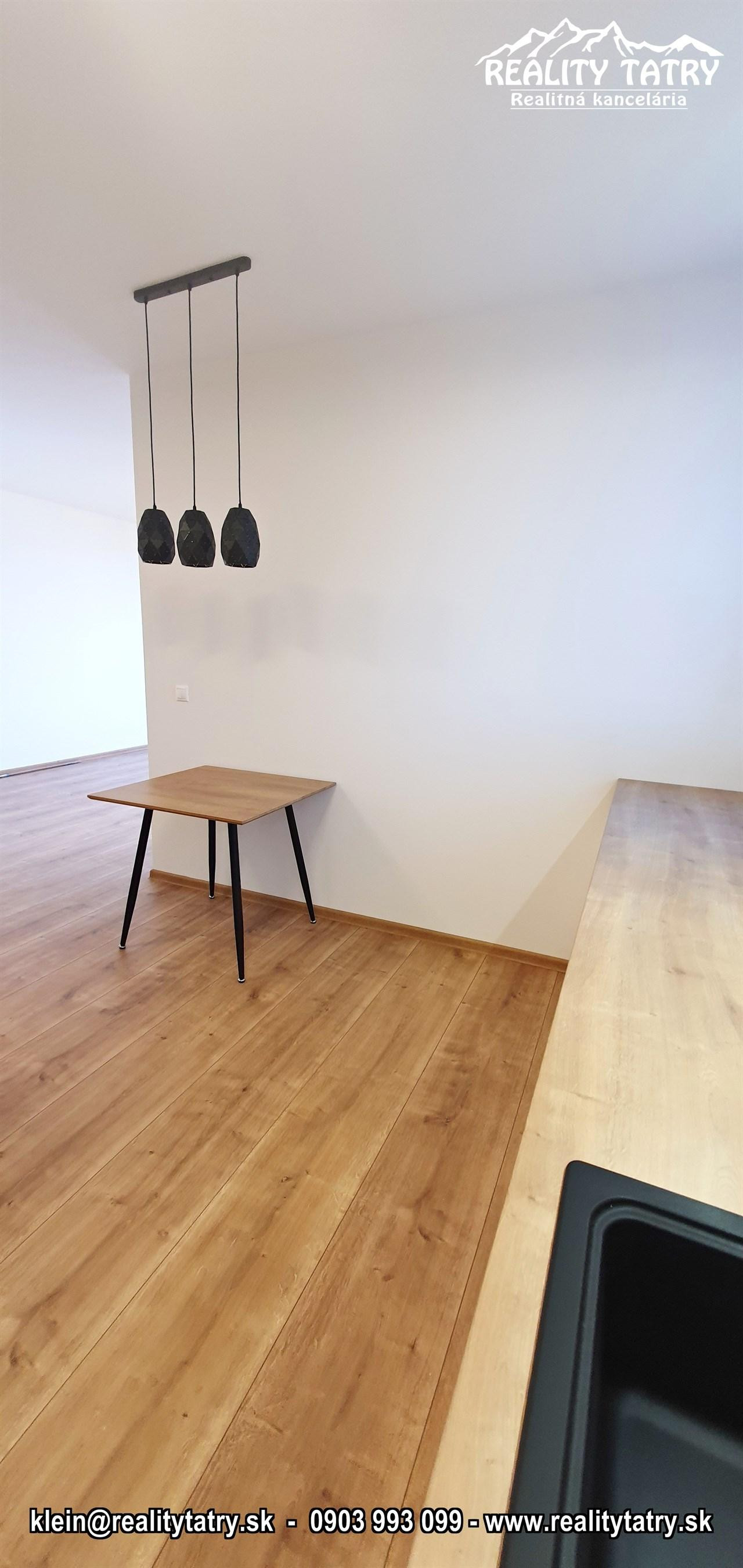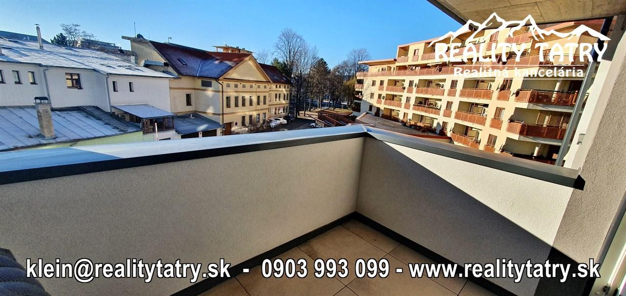 REALITY TATRY - EXKLUZÍVNE !!! Ponúkame na prenájom nádherný 2 izbový byt s terasou v Poprade. Byt sa nachádza v novostavbe bytového domu EDEN na ul. Štefánikova v samotnej blízkosti centra. Výmera bytu 48 m2 + slnečná terasa 5 m2 - orientovaná na juh. Komfortné bývanie vo vysokej kvalite a vybavenosti aj pre náročnejšieho klienta. Veľmi dobrá dispozícia bytu. Byt pozostáva z obývacej miestnosti prepojenej s kuchynským kútom, spálne, kúpeľne s vaňou a WC, chodby a terasy. Kuchynská linka na mieru so zabudovanými elektrospotrebičmi - keramická varná doska, elektrická teplovzdušná rúra, mikrovlna rúra, umývačka riadu, chladnička, digestor. Byt je čiastočne vybavený - sektorový nábytok, TV komoda, šatníkové skrine na chodbe, šatníková skriňa v spálni, manželská posteľ, práčka ... a t.ď. Byt je orientovaný na JUH a ZÁPAD. K bytu prislúcha aj sklad na poschodí pri byte a jedno vyhradené vonkajšie parkovacie státie.